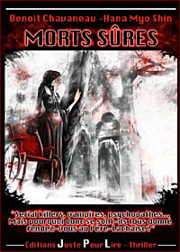 Réalisé par un duo qui semble fusionnel dans l'écriture, Benoît Chavaneau et Hana Myo Shin, Morts Sûres (habile jeu de mots qui souligne le côté vampirique de ce livre) est dans un premier temps publié dans la défunte revue Crypt'O Goth. Un thriller publié en feuilleton qui s'intitulait alors Le Noir Est le Rouge. Pendant une année, les lecteurs de cette excellente revue spécialisée resteront en haleine devant ces épisodes égrainés à chaque nouvelle parution. Une fidélité qui prendra fin avec l'arrêt brutal du magazine. Mais il fallait compter avec le désir des auteurs de poursuivre cette aventure. Ils croisèrent à leur tour le chemin des éditions Juste Pour Lire. Et Morts Sûres put voir l'accomplissement de son destin ! Ce thriller est un bijou d'écriture. Le style est plus vivant que jamais ; l'influence du feuilleton assurément ! La mise en page elle-même est originale et ne reste pas figée. Les caractères sont variés, offrant une lecture agréable et attractive. L'histoire vous happera d'entrée de jeu sans plus jamais vous lâcher, tant vous aurez envie de connaître le fin mot de ce thriller haletant ! Haletant est le mot, oui ! Car ce rythme effréné vous conduira « jusqu'au bout de la nuit », tout droit vers un dénouement surprenant ! Et le tout dans un laps de temps très court car l'action se déroule sur quelques semaines, de la Toussaint à Noël. Autre particularité rendue possible grâce aux éditeurs et au talent du one-man-band, HEAVENLY CREATURES : Morts Sûres peut se lire sur fond musical ! En effet, vous pourrez vous procurer sur le site de l'éditeur la première Bande Originale de Livre jamais réalisée. Une atmosphère d'électro-dark ambiant, tout ce qu'il y a de plus pénétrant, alliant passages planant d'une douceur envoûtante et rythmes sombres, oppressants... À écouter allonger, les yeux fermés pour laisser cette musique vous imprégner de son essence.