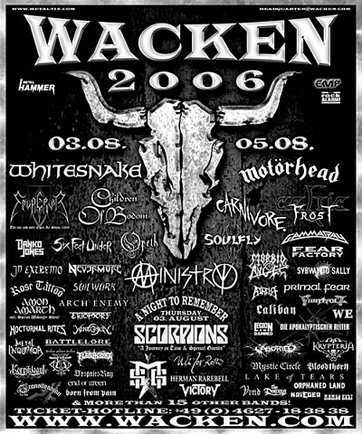 Ajouté : Jeudi 10 Août 2006 Live Reporteur : Gandalf Score :      Lien en relation: W:O:A Wacken Open Air website Hits: 44843