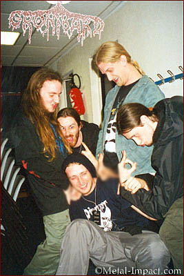 Rencontre avec avec le groupe GRONIBARD au complet durant le festival Brutal Death-Grind organisé par Luna Frigidis le 20 Avril 2002. En exclusivité, ils nous présentent leur nouveau "membre" qui occupe le poste de deuxième guitariste.