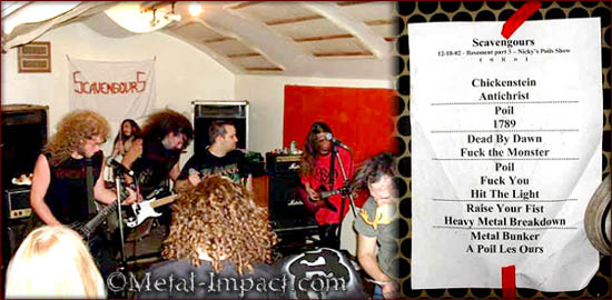 J'avais déjà vu les Scavengours (prononcez "Scavenjours") en tournée à Clermont-Ferrand en juillet dernier dans un petit bar sympa, juste au moment de la sortie de leur première démo (épuisée depuis). Et déjà on s'était éclaté comme des bêtes.