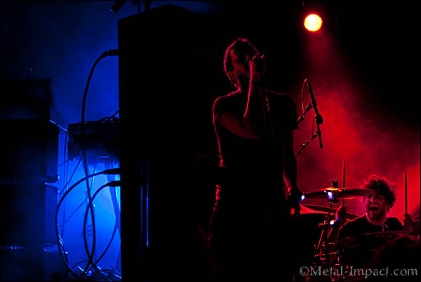 20 h 55. La salle est plongée dans le noir. Le public, en partie désarçonné par l'éclectisme des premières parties, attend impatiemment la tête d'affiche. 7 ombres se profilent sur scène accueillies par les applaudissements et les cris d'un public déjà acquis. Les premières notes sont celles de « And with her came the birds », morceau très doux, en son clair et aux paroles presque chuchotées, d'où émerge une ambiance nostalgique. Ensuite, avec « Owlood », le Post Hardcore tour à tour planant et musclé de CULT OF LUNA surgit des ténèbres. Un batteur, une basse, un clavier, un chanteur et pas moins de trois guitaristes composent le line-up de cette tournée. 7 musiciens qui nous offrent un show d'un professionnalisme sans faille, une exécution parfaite de leurs morceaux enchainés dans une set-list intelligemment composée. Ouvrant parfois, au cœur d'un son massif et plombé, des éclaircies salvatrices.