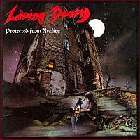 D’abord, la pochette. Pas de sang, pas de cartouchières, pas de monstre, pas de poses débiles avec bracelets cloutés. Une maison, juste une maison, mais un dessin. Le genre de dessin qui fout les foies. La vraie maison est sur la pochette arrière, aussi glauque que sa représentation picturale. Avec le groupe en avant-plan, genre on est pas contents, mais on sait ce qu’on fait la. Et le titre. Pas de death, ni de blood, ni de satan encore moins de Metal. Protected From Reality. Et la musique à l’intérieur est aussi hermétique. Alors on écoute. Et ça démarre fort. Apres un court riff d’intro, « Horrible Infanticide (Part One) » part sur les chapeaux de roues. La voix de Torsten est mixée en background, lointaine, écorchée et menaçante. Les contretemps s’accumulent comme les accords de guitare, cœurs martiaux. Le climat est lourd, presque palpable. On croit rêver, on croise les doigts en priant pour que tout ça ne soit pas juste une coïncidence. Et on a raison. « Manila Terror » déboule et là, on est en plein dans le salon. De vieux tableaux défraîchis ornent les murs couverts de pourriture, les photos jaunies représentent des visages sortis d’une autre époque, et les craquements du plancher vous glacent les sangs, on sait que quelque chose va se passer. On monte doucement les escaliers, les marchent plient sous le poids, « Natures Death ». C’est lent, c’est lourd, c’est long, comme l’ascension vers le premier étage de la maison. La, l’aspect change. Les étoffes sont soignées, le tapis presque fraîchement brossé, « Wood Of Necrophiliac (instrumental) » résonne à travers les murs, et on se prend même à croire qu’une vie paisible a existé entre ces cloisons. Pourtant un détail choque, le sang séché sur la vieille table. Et puis «Vengeance (Horrible Infanticide Part Two) ». Et là, on comprend toute l’horreur de l’histoire, la violence étouffée, le sadisme latent qui à fini par exploser un jour. La voix se fait toujours plus lointaine, comme pour signaler qu’on s’écarte du bon chemin. La maison nous rejette, on devient un « Intruder », et comme pour mieux nous le faire réaliser, le tempo ralentit, pour qu’on assimile bien le message. Partez avant qu’il ne soit trop tard. Et le dernier avertissement, c’est « The Galley ». Torsten, notre guide, se scie les cordes vocales dans un dernier râle de prévention déchirant. Mais on avance vers la chambre et on regarde sur la table de nuit. Un cadre splendide entoure le portrait de famille. On observe attentivement les yeux du père, qui semble déjà appartenir à une autre dimension, et on dirait presque qu’il veut nous parler. Et il le fait. Alors on court, parce que son discours, « War Of Independance » est dissuasif. On court, on court à travers la maison, et on franchit pour la dernière fois le seuil, sain et sauf. « Eisbein (Mit Sauerkraut) » résonne, la maison a encore gagné. Elle ricane nerveusement, en soubresauts très rapides, presque épileptique. Mais cette visite laissera des traces. Jamais plus une autre maison ne nous fera peur de cette façon, pas en Allemagne en tout cas. Et même pas aux Etats-Unis. Parce que LIVING DEATH a gardé la clé. Et personne n’arrivera à forcer la serrure de la maison qui était Protected From Reality. Et c’est peut être la crainte qui à empêché les autres groupes d’essayer. Celle de ne pas être à la hauteur…