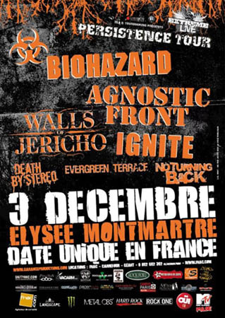 Groupes Présents au concert : DEATH BY STEREO, NO TURNING BACK, WALLS OF JERICHO, AGNOSTIC FRONT, IGNITE, BIOHAZARD