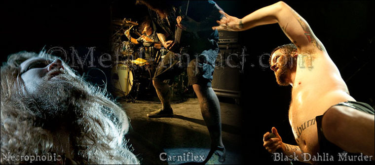 Groupes Présents au concert : INGESTED, CARNIFEX, THE FACELESS, OBSCURA, NECROPHOBIC, 3 INCHES OF BLOOD, BLACK DAHLIA MURDER