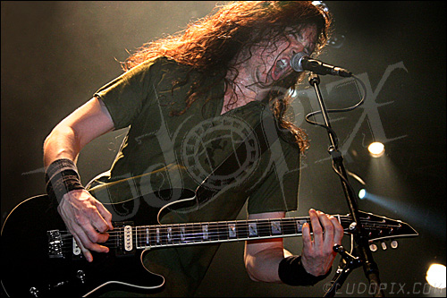 Avant cela, la rude tâche de préparer le terrain aux Bayonnais revient au groupe orléanais NESSERIA. Si les premiers titres, essentiellement Hardcore avec quelques touches de Grind, ne rencontrent, comme succès, que la base de fans potes avec les membres du quintette, l’énergie et l’engouement honnêtes déployés par Julien (basse, chant) lors de ses interlocutions finissent par conquérir une bonne partie du public, qui se laisse aller à remuer la tête et taper du pied sur la cadence des moshparts. Toujours en gardant une convivialité agréable, le combo a tendance à faire de l’humour en citant les clichés satanistes du genre lors des explications des significations des morceaux, ce qui finira néanmoins par être redondant au bout de la cinquième fois. En outre, bien que les textes soient en français, inutile de me demander ce que beuglait éperdument Adrien, puisqu’il était carrément dans les codes du genre en restant incompréhensible et brouillon. Les balances étant pré-réglées pour GOJIRA, la batterie se hisse au-dessus du lot grâce à un son puissant et percutant qui nous incite clairement à headbanguer. On notera également des riffs groovy vraiment sympas sur une certaine composition, ainsi qu’un autre morceau se démarquant de par son efficacité vocale et rythmique, malheureusement je n’ai retenu aucun des noms de titres. On peut dire que NESSERIA a bien réussi son coup, en parvenant à mettre le public en jambes, alors que ce n’était pas forcément le genre de groupe le plus adéquat à la tâche, vis-à-vis de la tête d’affiche.