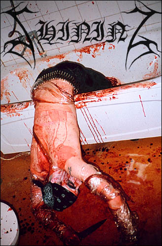 Niklas. La majeure partie des rumeurs qui ont circulé concernant le show de lancement de l’album V-Halmstad vient tout simplement d’exagérations faites par des médias. C’était plus ou moins un concert normal de SHINING où quelques invités sont apparus : Attila, Nattefrost et naturellement mon très bon ami Maniac et qui ont tous contribués à la naissance de GHOUL. Les médias ont plus parlé des évènements du shows plus que du shows: ils ont raconté que j'ai remis des lames de rasoirs aux personnes de la rangée avant, leur indiquant de se blesser, que j'ai donné un coup de pied à quelqu'un, que j'ai bu de l'urine, que Maniac m’a frappé et a dessiné une svastika sur son front. Bien, pour être clair, je distribue souvent des lames de rasoirs aux spectateurs, je veux que les personnes se blessent, je blesse les personnes et dois corriger les fans qui pensent trop à eux-mêmes. Je bois souvent de l'urine car c'est une partie de moi, que je fais ca à tous les concerts de manière ordinaire et banale, or ce n’était pas un concert ordinaire… il fallait évacuer toutes les énergies négatives accumulées. Et enfin et surtout, Maniac était, comme on dit, de très très mauvaise humeur, il avait beaucoup bu et dans ces cas là, parfois vous jouez avec votre corps, d’où l’explication de ce dessin de svastika sur son front. Pourtant je veux préciser qu’il n’y a aucune connotation politique dans tout ca, il n’y a pas matière à savoir si vous êtes noirs, blanc, brun, vert… pour moi tout ceci est sans valeur, et je ne veux pas vraiment comprendre le fuzz à propos de ca. Cela veut dire que pendant une chanson le fait que Maniac (qui ne fait pas parti du groupe) dessine une svastika sur son front, ne signifie en rien, que SHINING, le groupe, soit impliqué.