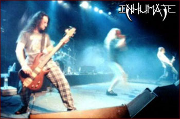 Dans ma liste j’ai volontairement pas mis HARD N HEAVY car c’est le SEUL magazine qui a chroniqué TOUS nos albums, sachant que cela ne leur a rien rapporté financièrement et encore moins au niveau d’une quelconque reconnaissance de la part des gens, à part des membres d’INHUMATE [Rires]... Surtout quand je vois METALLIAN qui ose se placer comme le défenseur de l’underground... Franchement je suis persuadé qu’ils nous connaissent mais alors pourquoi est-ce qu’ils nous foutent à la trappe... Et là il y a bien sûr un peu de rancoeur personnelle (soyons franc), mais il y a surtout beaucoup de bile à vomir face à des gens qui se DEVRAIENT d’être indépendants (n’est ce pas le premier engagement d’un journaliste ???) et qui ne le sont pas du tout...