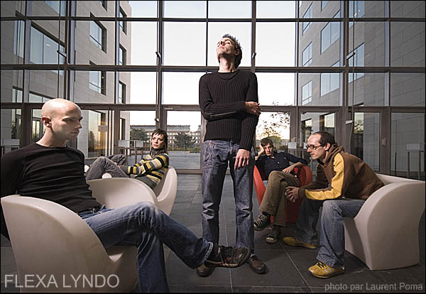 FLEXA LYNDO est un groupe qui est actif au sein de la scène belge depuis plus de 10 ans. Nous sommes tous originaires de Namur, petite ville à 60km au sud de Bruxelles. Hormis un "noyau" dur de 3 personnes (Gael, Gaetan et moi), le line up est plutôt changeant. Nos influences proviennent de la musique, tous genres confondus, mais aussi du graphisme, de la littérature ou du cinéma, et notre parcours discographique va de la lo-fi (en 1999, sortie de l’album « 45 minutes » produit par Federico Pellegrini des « Little Rabbits ») en passant par la pop instrumentée (en 2001, sortie de « Little Everyday Masterplan » produit par Tony Goddess des «Papas Fritas ») et l’électronique à guitares (voir le dernier album, « Slow Club »).