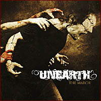 Fuyez ! Autant que faire se peut. UNEARTH vient de libérer son titan de pierre. Et ce ne sont pas de vulgaires mains suppliantes qui réussiront à calmer la bête. La bête, pour une fois, ce n’est pas notre ami le Cornu qui vit dans son chaudron, mais plutôt ce palet, précieusement enfermé dans un merveilleux écrin tout à fait à mon gout. Puissance et émotion sous ses reflets ocre, il ne m’en faudra pas plus pour qualifier l’artwork de superbe. Le titre en impose également ; The March. Difficile de ne pas se représenter ce colosse faisant trembler tout un quartier sous ses pas chancelants. Visuellement, UNEARTH semble avoir mis de bien beaux atouts de son côté et fait déjà cogiter son auditorat au sort qui lui sera réservé. En on ne peut que se réjouir de pareilles intentions, surtout quand elles sont proposées par une formation de leur envergure. Car pour les distraits, ce groupe qui fête cette année son dixième anniversaire demeure une des vertèbres les plus solides au monde de la colonne Metalcore. Des disques unanimement salués à défaut d’être décriés ou adulés (c’est selon), une réputation de bourlingueurs hypertrophiés shootés au gros son, telles sont quelques unes des principales caractéristiques d’UNEARTH.