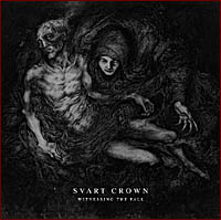 Qui dit nouvel échelon dit progression. Tout dépend aussi de la signification qu'on donne exactement au terme "progression". Ages Of Decay donnait dans le Metal extrême à multiples facettes. Que les choses soient bien claires : Witnessing The Fall se veut absolument plus Death, sans concession et sans pitié. SVART CROWN s'affirme d'autant plus en creusant le style, en s'éloignant avec assurance du batardisme à la BELPHEGOR, que les Niçois affectionnent pourtant. Alors d'entrée, l'auditeur est pris à la gorge. Cette intro, "Where The Light Ends", annonce la couleur, enfin plutôt la fin de la couleur et de la lumière, et plonge dans les ténèbres. Puis c'est le déluge : "Colosseum", "Dogs Of God" et "Nahash The Temptator" (celui ci est énorme !!!) constituent le trident d'assaut du SVART CROWN nouveau. Entre la voix caverneuse de Le Bail, et le matraquage singulier de Gael Barthélémy (ex-BALROG, entre autres), impossible de sortir indemne de cette descente aux enfers. Les solis hystériques mais travaillés mettront un peu de baume au cœur des fans déçus de SLAYER, ceux qui regrettent amèrement les inspirations passagères de King et Hanneman à l'époque de South Of Heaven... C'est ce fameux climat malsain que l'on retrouve sur la dernière plage de Witnessing The Fall, ces huit minutes de souffrance tordue nommées "Of Suphur And Fire", introduites par des arpèges à filer le frisson et menées sur un rythme plus imposant qu'ultra-rapide. Entre temps, SVART CROWN a tout ravagé, aidé grandement, j'insiste, par le talent de ce cogneur atypique qu'est Gael Barthelemy. Le discours de SVART CROWN reste violent ("Strength Higher Than Justice"), accouplé à merveille à des compos toujours percutantes, jamais redondantes.