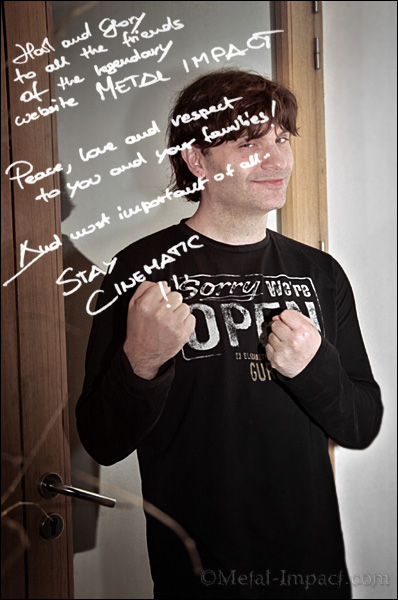 Luca. Tu sais, c’est assez incroyable ce qui m’arrive, la réaction de la presse est très bonne, je dirais même excellente. La maison de disque nous soutient un maximum et fait tout pour nous assurer une promotion brillante et réussie. C’est dingue, je vis un véritable rêve. Je suis très satisfait de Nuclear Blast qui me soutient à fond, ils ont toujours été à mes cotés même dans les moments les plus difficiles. Ils ne m’ont jamais mis la pression, ils ne m’ont rien demandé avant qu’ils ne reçoivent le master définitif. Je n’ai pas eu à envoyer un seul titre avant la finalisation de l’album, j’ai eu la chance de disposer d’une liberté totale. Nous avons une relation de confiance exceptionnelle. C’est ce qui m’a poussé à continuer dans la musique et à ne pas tout arrêter et à changer de travail et de vie. Il y a des gens qui m’offraient beaucoup d’argent et même d’avantages mais je savais que si j’acceptais je n’aurais jamais la même liberté qu’aujourd’hui. Si tu es un véritable artiste, tu ne cèdes pas à ce genre de tentation, tu ne vends pas ton âme, tu restes vrai et tu essayes d’imposer ce en quoi tu crois. Je me fous de l’argent et des avantages que cela procure. Tu dois faire avant tout ce qui te plait réellement, aller au bout de ta passion et créer quelque chose qui te procure des émotions. C’est pour moi une sorte de mission spirituelle. Quand j’étais chez moi et que j’écrivais il m’est souvent arrivé de pleurer, c’était très intense et très fort émotionnellement quelque chose de très puissant qu’il n’est pas facile de décrire avec quelques mots. Et ce qui est primordial, c’est que mes fans et tous ceux qui écouteront cet album ressentent la même émotion. C’est un album vrai et j’espère vraiment qu’ils ressentiront ce que j’ai moi-même vécu et ressenti en composant ces morceaux. J’ai envie de partager tout ça avec eux, en dehors de la scène et aussi en concert. Nous faisons du Cinematic Metal, il va y avoir beaucoup de surprises et de choses nouvelles sur cette tournée, c’est pourquoi nous l’avons appelée "Ascending To Infinity Cinematic World Tour". Ce ne sera pas un show classique mais unique et très spécial !!!