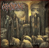 Seulement voilà, il n’y a qu’une année (et quelques mois) qui sépare ce disque de son grand frère et le moins que l’on puisse dire, c’est que si cette sortie n’est pas vraiment précipitée, elle n’en demeure pas moins hâtive. Pendant que Human Concept reprenait tranquillou quatre compositions présentes sur leurs deux premières démos, Age Of Perversion fait intégralement dans l’inédit, même si l’on peut suspecter OFFENDING d’avoir allègrement pioché dans une boîte à idées débordante. L’entrée en matière laisse pantois. Des guitares mélodiques glaçantes, un peu Black Metal dans l’esprit, chevauchées par un jeu de batterie suiveur plutôt que leader, les Français nous offrent une introduction un peu inhabituelle. Tout se débride après 100 secondes aussi intenses que pénibles, quand les premiers gargarismes du désormais emblématique Jesus The Butcher résonnent comme des coups de marteau dans la tempe. On retrouve alors l’OFFENDING ambitieux et conquérant, même si le déroulement de cet opus laissera entrevoir quelques failles inédites dans un système jusqu’alors parfaitement huilé. La densité tout bonnement hallucinante de leur Death Metal tendancieusement brutal laisse ici davantage de marge à des mid-tempos et des phrasés techniques qui s’incrustent difficilement dans un mur de son moins homogène que dans le passé. Il aura fallu attendre un « Depravity » concis mais terriblement entrainant pour entrer de plein pied dans ce disque. Précédemment, on avait le choix entre un « Enslavement » épileptico-anecdotique et un « Dominion » haché-menu assez maigrelet. OFFENDING avait posé sur table quelques lacunes dans la composition, tout en continuant sa démonstration technique entreprise depuis le commencement. Mirage. En la présence d’« Age Of Perversion », on oublie les couacs pour se plonger dans ce qui est à mes oreilles, la compo la mieux écrite de leur répertoire. Différents tempos se succèdent dans une ambiance hypnotique pour aboutir sur un final grandiose, mêlant répétitivement alarmisme et angoisse. Après cette bifle, le retour à la réalité est plus rude, notamment avec un « Submission » qui tire sur la corde et un « Devotion » dont la deuxième partie tout en toucher sur la lead et qui marque en même temps la fin du skeud, ne suffit pas à masquer les quelques creux qui garnissent Age Of Perversion.