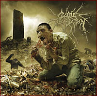 On connaît les bestiaux, jusqu’à leur régime alimentaire. Ce qu’on connaissait moins, c’est cette propension à proportionner leurs travaux en fonction de la situation. Elle est catastrophique. Et à en juger la différence d’intensité comparée à The Harvest Floor, non seulement elle s’est dégradée, mais elle semble également irrattrapable. CATTLE DECAPITATION a toujours été connu et apprécié pour son Death / Grind frénétique. Alors affirmer que sur ce point, il y a une réelle évolution relève de la gageure. Seulement voilà, ce Monolith Of Inhumanity est d’une telle perfection dans sa composition et son exécution que les Américains peuvent pour la première fois prétendre à entrer au Panthéon de la Musique extrême. Ce disque est un tombeau brulant et sombre, garni d’ombres narquoises qui défilent sur des murs qu’on devine à peine. C’est le côté absurde d’une profanation nécrophile déguisé en Ronald McDonald. C’est la matérialisation physique d’un combat quotidien et le moins que l’on puisse dire, c’est que les excès répétés de la société de consommation moderne ont mis en pétard nos vegans. Furieux, gonflé à bloc, profitant de la moindre seconde pour gicler son Grind bovin à la face de l’auditeur, cet opus est de loin le meilleur dans sa catégorie depuis bien des années. La frénésie atteint vite son paroxysme sur « Dead Set On Suicide », qui met en scène des vocaux véritablement horrifiants, à côté des traditionnels grognements et autres gruiks de Travis Ryan. Un travail particulier a été effectué là-dessus, puisqu’on atteint véritablement un point de non-retour sur « Lifestalker » et son refrain planant en chant clair-hurlé. CATTLE DECAPITATION revient également à des choses plus Grind, notamment sur « Do Not Resuscitate » malgré quelques sorties en mid-tempo. Monolith Of Inhumanity réussit la prouesse de caser un peu de diversité au cœur de l’opacité. L’angoissante et lymphatique « The Monolith » ainsi que la progressive « Kingdom Of Tyrants » en sont deux preuves supplémentaires. Et si vous cherchez encore le moindre défaut à cet album qui s’imposera illico-presto comme un modèle du genre, tournez-vous vers d’autres cieux. Car si CATTLE DECAPITATION n’est pas au sommet de la chaîne alimentaire, il est aujourd’hui au sommet de son art. Et rien ni personne ne saurait, en toute honnêteté intellectuelle, remettre en cause ce fait avéré.