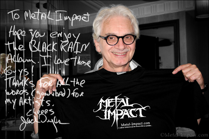 Rencontrer Jack Douglas est une expérience dont on ne sort pas indemne tant le bougre a de choses à raconter ! Chaque phrase est un événement en soi. Jack Douglas est un mythe vivant qui a traversé toutes les décennies et a plus de quarante ans de carrière derrière lui en tant que producteur. Si le nom n'évoque pas forcément de prime abord quelque chose, son destin est lié à des combos aussi légendaire que AEROSMITH, NEW YORK DOLLS, BLUE ÖYSTER CULT, ALICE COOPER ou encore JOHN LENNON. Autrement dit, il a tout vécu ou presque. Un entretien avec le maître équivaut à un voyage intersidéral au cœur de l'histoire du Rock. Une descente dans les abysses du Metal de quoi vous hérisser le poil pendant des décennies. Il faut dire que son parcours débute au milieu des années 60 lorsqu'il participe à la campagne des élections sénatoriale au côté de Robert Kennedy qu'il accompagne en tant que musicien ! Une destinée hors du commun qui va l'amener à participer par la suite à la naissance d'albums cultes qui vont exploser les tympans de plusieurs générations ! Maître d'œuvre de la carrière d'AEROSMITH, il est à l'origine de pépites tel Toys In The Attic, Rocks ou encore Draw The Line de quoi rendre hystérique n'importe quel producteur en herbe. Il ne compte plus les disques d'or ou de platine accumulé tout au long de quarante ans de bons et loyaux services, de quoi faire frémir ! Notre New Yorkais ne tarit pas d'éloge sur BLACKRAIN, sa dernière découverte à laquelle il a donné le son de It Begins qui est un vrai petit bijoux Glam Rock à souhait d'une efficacité redoutable. Un véritable honneur pour nos Glameurs de Annecy au vu de son parcours exceptionnel ! C'est à l'occasion d'un séjour à Paris en compagnie des BLACKRAIN que Monsieur Jack Douglas a bien voulu nous accorder une entrevue. Notre américain s'avère être un personnage sympathique qui ne se prend pas du tout au sérieux, bien au contraire ! Doté d'un humour irrésistible, il adore raconter des anecdotes plus extraordinaires les une que les autres. Un entretien placé sous le signe de la convivialité et de la jovialité, un vrai délice de pouvoir converser avec une telle légende qui se révèle être aussi un véritable conteur. Magnéto Jack !