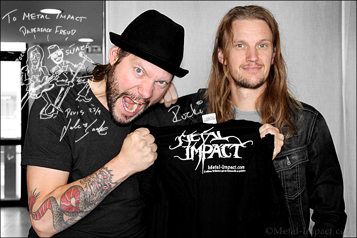 PAPERBACK FREUD un nom qui ne vous dit peut être rien et qu'on pourrait croire tout droit sorti d'un ouvrage destiné à traiter des patients souffrant de troubles du sommeil aigues ! Que nenni ! Ce n'est pas non plus un médicament magique ! Ce n'est pas non plus des psychanalystes prêt à interpréter interpréter vos rêves plus ou moins sexuels loin de là ! Mais tout simplement le nom d'un combo nous venant de Suède près à dévaster la planète avec un Rock'n'roll sur vitaminé redoutable et sauvage. Nos Suédois distillent un Rock'n'Hard Punky des plus efficaces prêt à vous exploser les neurones en un rien de temps. Nos bad boys ne font pas dans la dentelle bien au contraire ça sent la sueur, le Rock, les Harley, les filles et la bière ! Un vrai sacerdoce qu'ils semblent apprécié au plus haut point. Il suffit d'écouter leur dernier méfait Hard Rock City pour comprendre leur philosophie, on est bien loin de Freud et de ses théories alambiquées sur les fantasmes du genre humain ! Leur programme est simple nous emmener tout droit au cœur de la cité du Metal là où le houblon règne en maitre. Un paradis dont eux seul détiennent l'itinéraire secret ! Nourris exclusivement par les décibels d'AC/DC, KISS, MOTÖRHEAD ou encore TED NUGENT nos petits gars sont issus de Stockholm et on déjà à leur actifs deux galettes (Roller, All In A Day's Work) tout aussi ravageuses les unes que les autres destiné à vous faire des trous dans la tête à la vitesse de l'éclair ! Impossible pour votre serviteur de ne pas aller soumettre à la question ces bikers venant du froid histoire de connaître le chemin menant à cette ville utopique qu'on appelle Hard Rock City ! Rencontre avec deux Rockers sympathiques prêt à dévoiler tous leurs secrets une bonne mousse à la main! Magnéto les gars c'est à vous !
