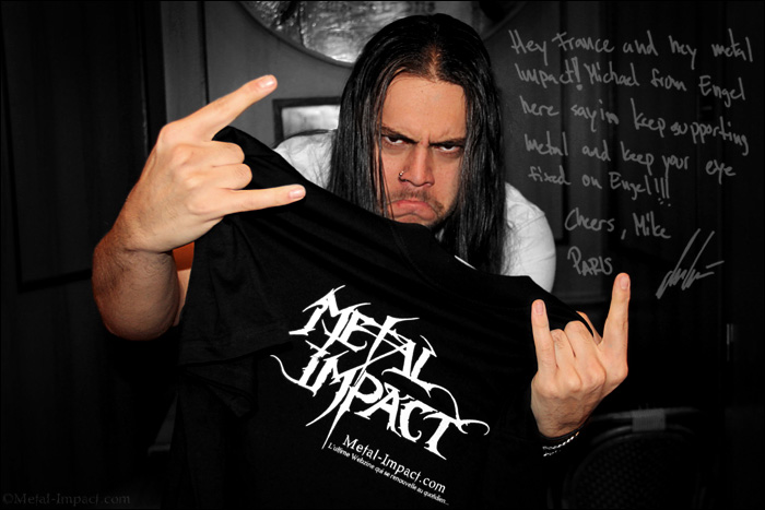 ENGEL est un combo qui nous vient de Suède et qui a la particularité d'avoir déjà derrière lui quatre albums au compteur sur un parcours de neuf ans. Formé par Niclas Engelin, devenu depuis peu le guitariste officiel d'IN FLAMES, le gang pratique un Death Metal mélodique bercé par des influences Indus. Le résultat s'avère être un mix des plus redoutables prêt à vous exploser les neurones en un temps record. Pour leur quatrième méfait, Ravenkings, les bougres se sont entourés d'une pointure en la personne de Jacob Hansen qui s'est chargé du mixage. Le résultat est à la hauteur de nos espérances, la galette regorgeant de hits en puissance calibrés à la perfection pour vous faire frémir les cages à miel. Niclas Engelin, guitariste et leader d'ENGEL, étant en tournée avec IN FLAMES, c'est Mikael Sehlin le tout nouveau chanteur de la formation qui est venu nous rendre visite afin de nous donner quelques explications sur la nouvelle galette Raven King. Entretien dans un café Parisien autour d'une bonne bière avec un garçon sympathique simplement heureux de se retrouver aux côtés du gang de Niclas Engelin. Magnéto Mikael, c'est à toi.