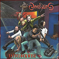 Cet avis se confirme avec Anticlockwise, le deuxième méfait de DEADLYSINS (après un EP, Oldschool, en 2008, un debut album, Dementia, en 2012). La galette se présente habillée d'un artwork représentant le gang dans un pose caricaturale. Armés de leurs instruments, Laurent L et Laurent B (guitares), Lambert (basse, backvoice) et Kevin Paradis (batterie) font un rempart de leur corps pour protéger Mat (chant) d'une horde de...créatures hors champ. Le frontman tient un coucou dans les bras et fait une mano cornuta de la main libre. Le lien entre le dessin, le titre de l'album et son contenu ne sautent pas aux yeux, mais cette auto-parodie laisse entrevoir qu'on a affaire à des gars qui se prennent pas plus au sérieux que çà.