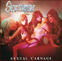 Beaucoup ont fait appel aux fondements Grind pour décrire la musique de SEXTRASH. Il n'y a rien de plus faux, même si le jeu épileptique et approximatif de D.D Crazy rappelait un tant soit peu les exactions épidermiques de Mick Harris. Mais ne vous y trompez pas, Sexual Carnage n'était rien d'autre que du Thrash (très) bestial fortement teinté de Death, calquant quelques années plus tard le schéma appliqué par SEPULTURA sur ses premiers travaux, en poussant le bouchon encore plus loin. Ici, pas question de satanisme cheap, mais bien de sexualité dépravée, de nuits d'orgie, et d'esclavage lubrique, mis en musique par des instrumentistes au potentiel très limité, fans des premiers SODOM, KREATOR, et certainement du Thrashcore local et américain, CRYPTIC SLAUGHTER en tête.