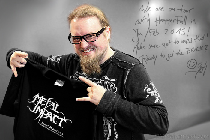 Seeb. [Rires] ... Peut-être que je me trompe mais c'est facile de convaincre quelqu'un de connu. Je ne suis pas un grand fan de ce genre d'exposition médiatique. Je pense que les gens doivent acheter l'album parce qu'ils ont envie d'écouter ORDEN OGAN et non pas parce qu'il y a des invités sur l'opus. Ils peuvent acheter leurs cd. Pour que cela fonctionne réellement, il faut qu'il y ait une vraie osmose que ce soit au niveau personnel ou musicalement et c'est ce que nous recherchons. Nous avons tourné avec GRAVE DIGGER en 2011 et on a développé au fil des dates une forme d'amitié. J'ai été invité à chanter sur leur dernier album, Chris Boltendahl m'a invité à me joindre à eux et cela a été une bonne expérience. Lorsque nous avons terminé l'enregistrement, il m'a dit que si j'avais envie qu'il vienne chanter sur un titre d'ORDEN OGAN, il était d'accord. A la seconde où il m'a dit ça, j'ai su tout de suite sur quel titre il pouvait chanter, c'était une évidence pour moi que nous allions le faire. Pour Joachim Cans, c'est un peu différent. On avait cette chanson de prête et j'avais l'impression qu'au niveau du break il fallait une autre voix que la mienne. J'avais tout enregistré mais je n'étais pas tellement satisfait pour moi il manquait quelque chose. Il fallait que quelqu'un d'autre intervienne et vienne chanter sur ce morceau. C'est à ce moment-là que l'on nous a annoncé qu'on allait assurer la première partie de la tournée européenne d'HAMMERFALL. C'était évident qu'alors Joachim était parfait pour assurer ce rôle.