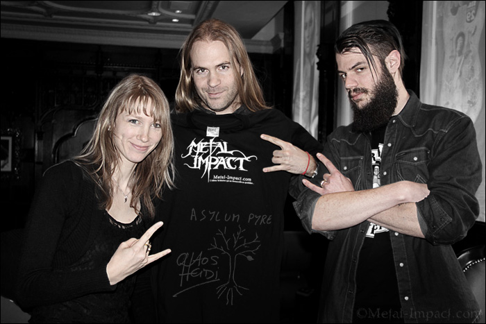 ASYLUM PYRE nous reviens en force trois longues années après la sortie de Fifty Years Later, un opus qui avait marqué tous les esprits par sa qualité qui laissait entrevoir un futur très prometteur. Il faut dire qu'entre temps les bougres n'ont pas chômé, bien au contraire. Le gang a enchainés les dates à travers l'hexagone pour ensuite consacrer l'année 2014 à l'enregistrement et l'écriture de leur nouvelle pépite Spirited Away ! Pour relever ce challenge, la formation n'a pas hésité à faire une nouvelle fois appel à Didier Chesneaux pour la production. On ne change pas une équipe qui gagne, d'autant que Didier a su leur ciseler un son parfait pour leur Metal symphonique. Un travail qui va bien plus loin que celui de producteur puisque Didier a mis aussi au service d'ASYLUM PYRE ses talents de guitariste que ce soit en solo ou en rythmique. Une collaboration qui s'avère payante, nos parisiens ayant réussi avec Spirited Away à franchir un nouveau cap musical en innovant une fois de plus tout en restant fidèles à leurs racines. Chaos Heidi s'avérant bien plus épanouie vocalement sur cette nouvelle offrande en nous offrant au passage quelques prouesses vocales impressionnante. La nouveauté n'est pas uniquement musicale mais aussi dans les textes ! Le japon étant mis à l'honneur grâce à un hommage appuyé à Hayao Miyazaki, un réalisateur japonais dont Chaos et Johann sont très friands. Spirited Away nous plonge dans un univers totalement différent des deux précédents méfaits et nous surprend à bien des égards par ses innovations qui prouve qu'ASYLUM PYRE a encore beaucoup à dire. Il n'en fallait pas plus pour que votre serviteur s'en aille quérir des nouvelles auprès de la belle et charmante Chaos, histoire de faire le point sur les trois dernières années qui se sont écoulées depuis la sortie de Fifty Years Later. Entretien avec une artiste prolixe, bourrée d'humour sachant faire partager ses émotions et sa passion pour défendre son petit dernier ! Magnéto Chaos, c'est à toi !